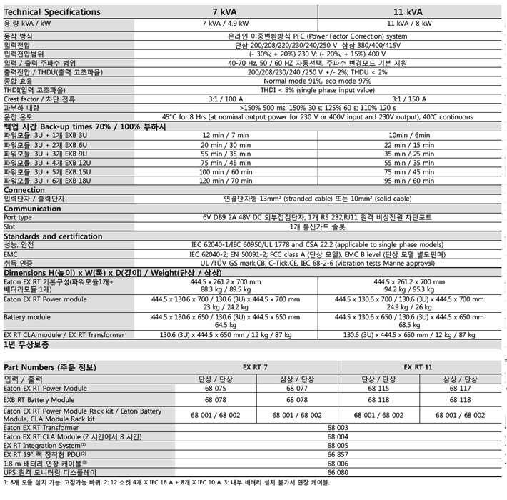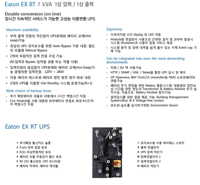 - home > 25.EATON(이튼 중소형UPS) > Comet-Series(ON-LINE방식)(일반) > Comet EX 7RT / 7KVA(4900W)